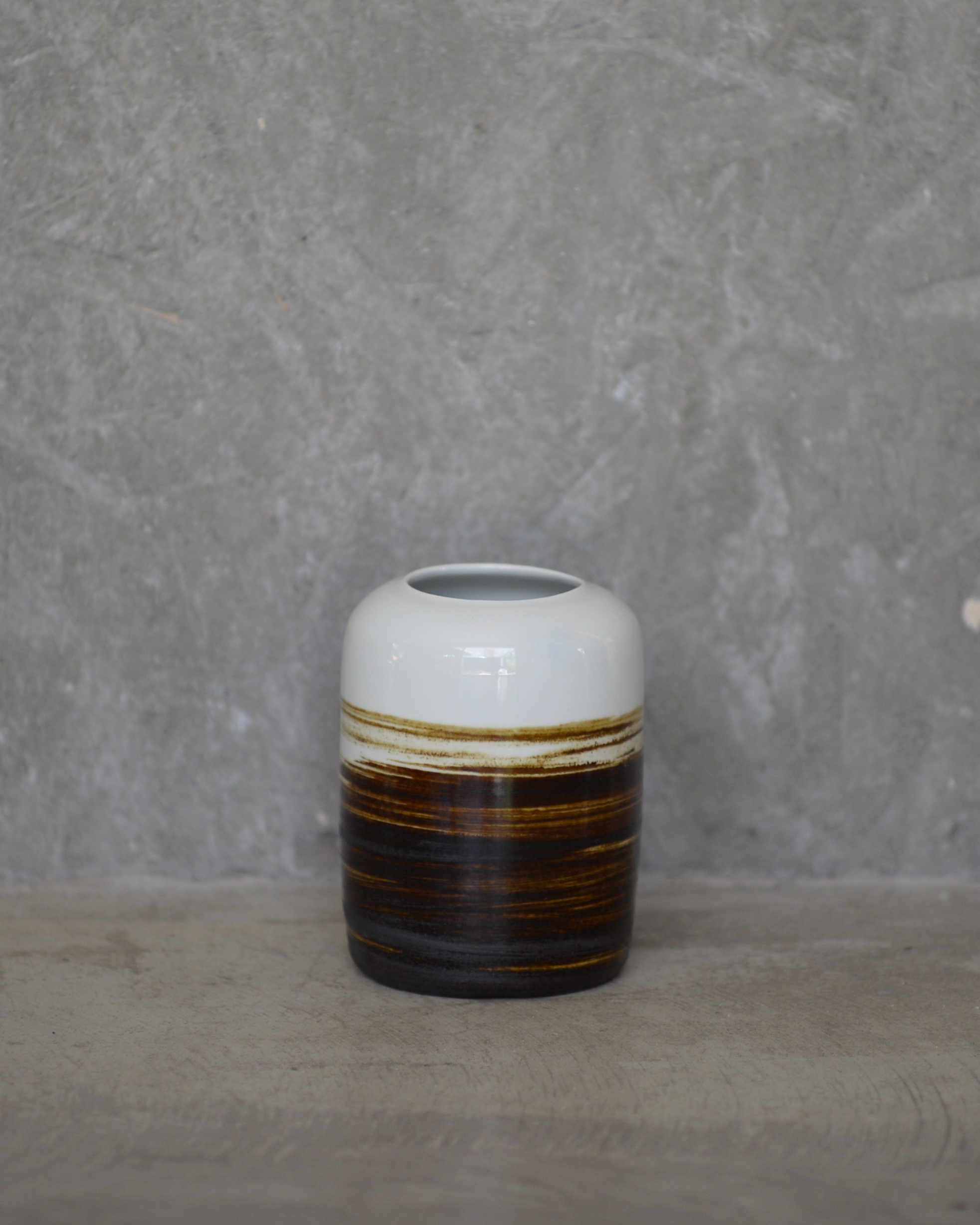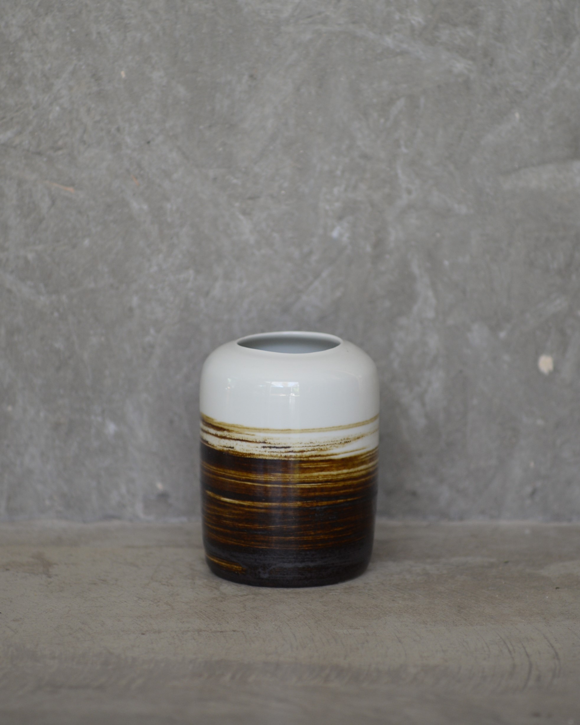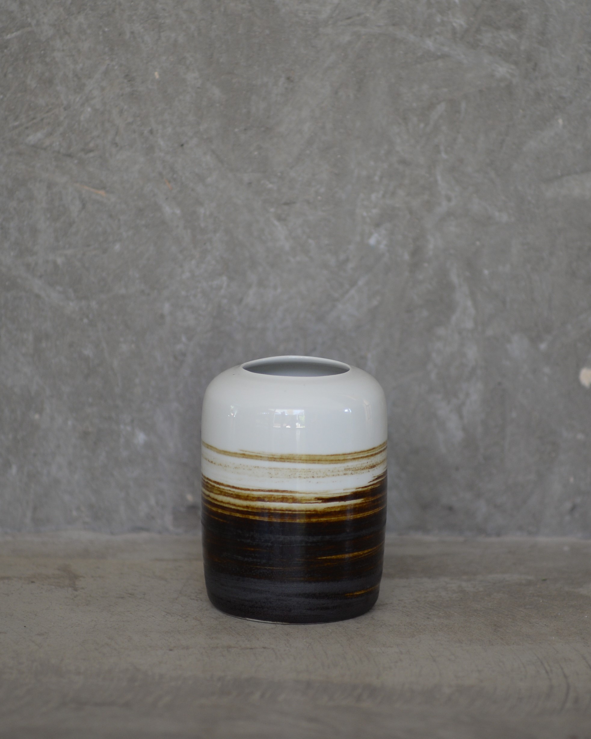 Jarrón decorativo de porcelana de textura sedosa y acabado brillante. De boca ancha.