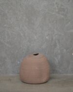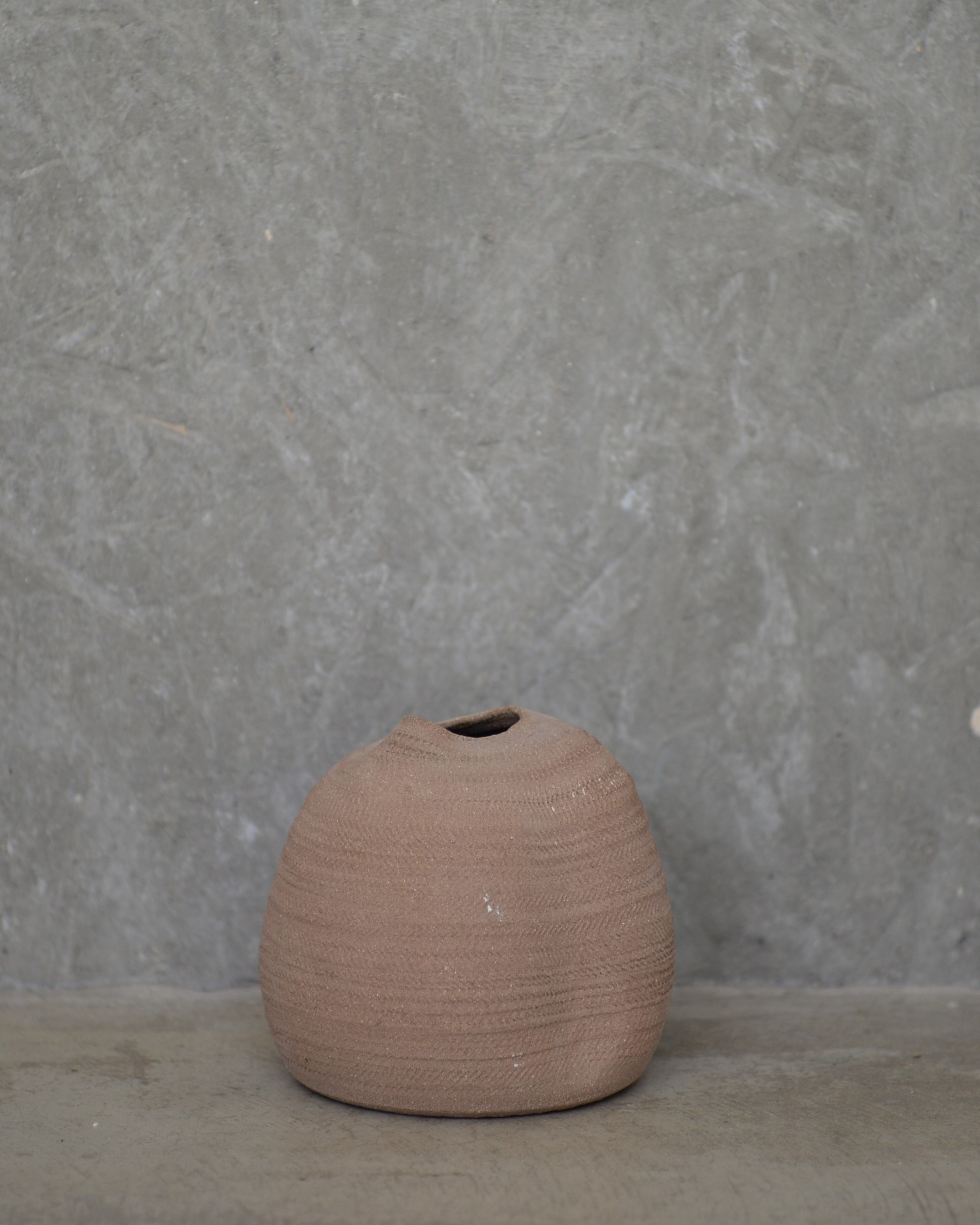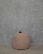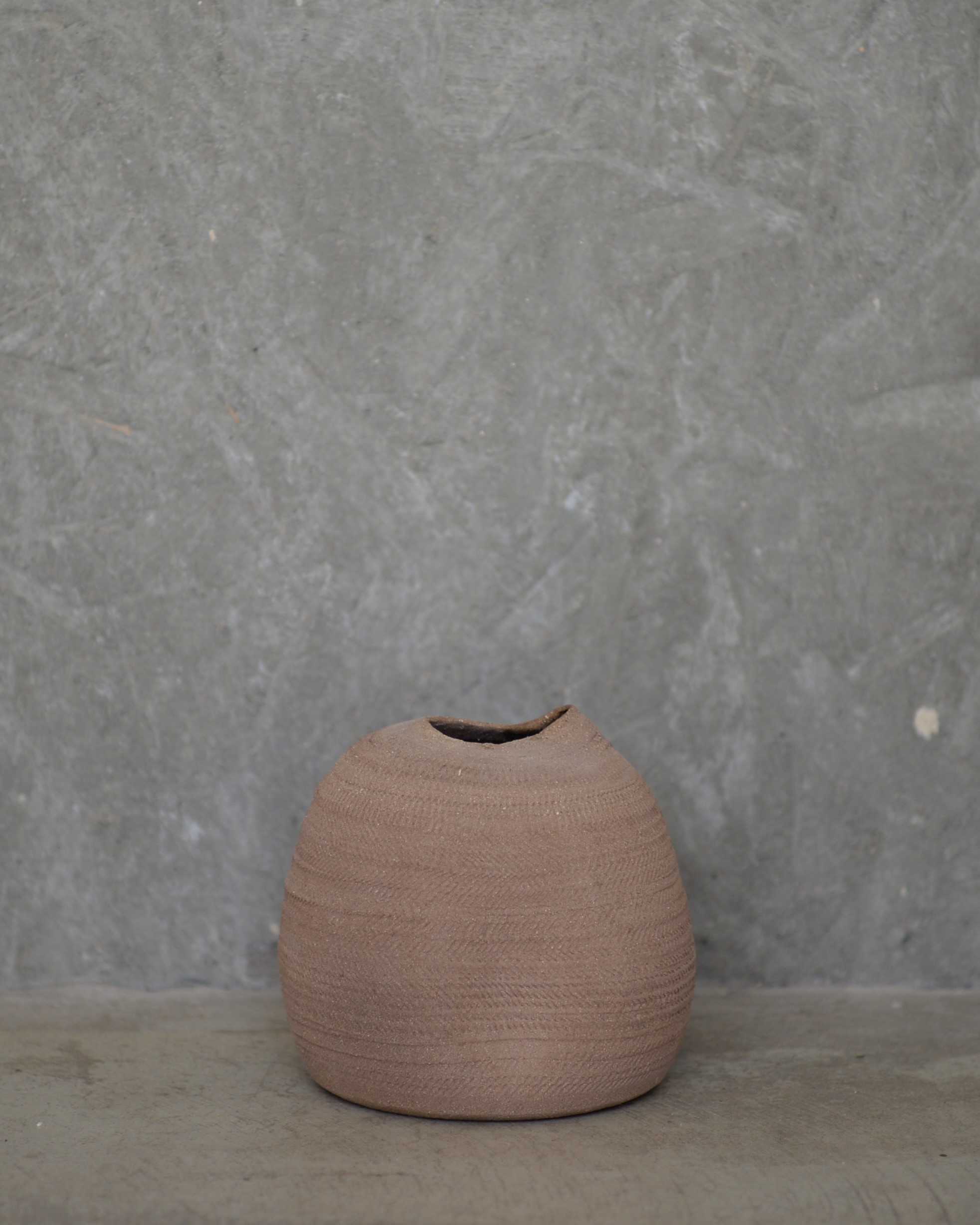 Pieza decorativa de gres sin esmaltar de textura rugosa y mate.
