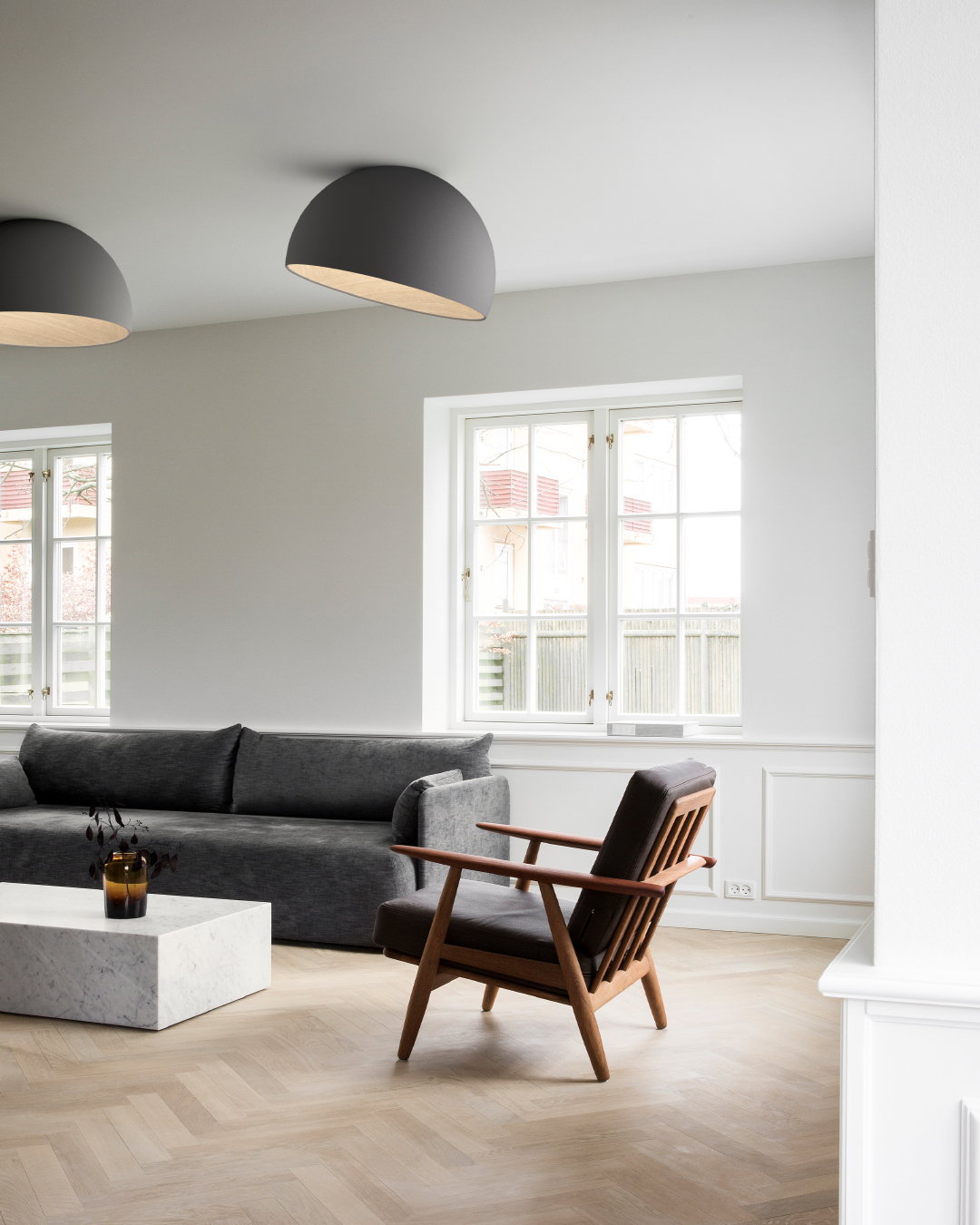 Es una lámpara de contrastes, que se integra con naturalidad en todo tipo de entornos.
