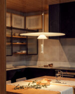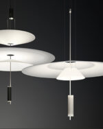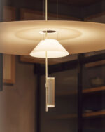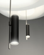 Lámpara colgante que ofrece dos iluminaciones, luz ambiental a través de su difusor de material termoplástico translúcido y puntual a través de su terminal LED.