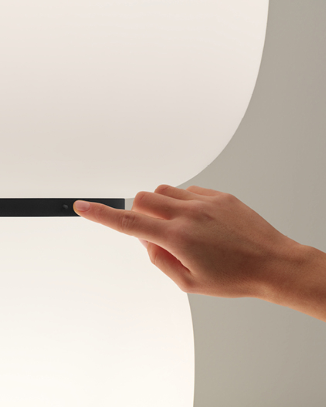 Un aro negro rodea la parte central, acentuando la sensualidad de sus curvas, integrando en él el interruptor (Push).