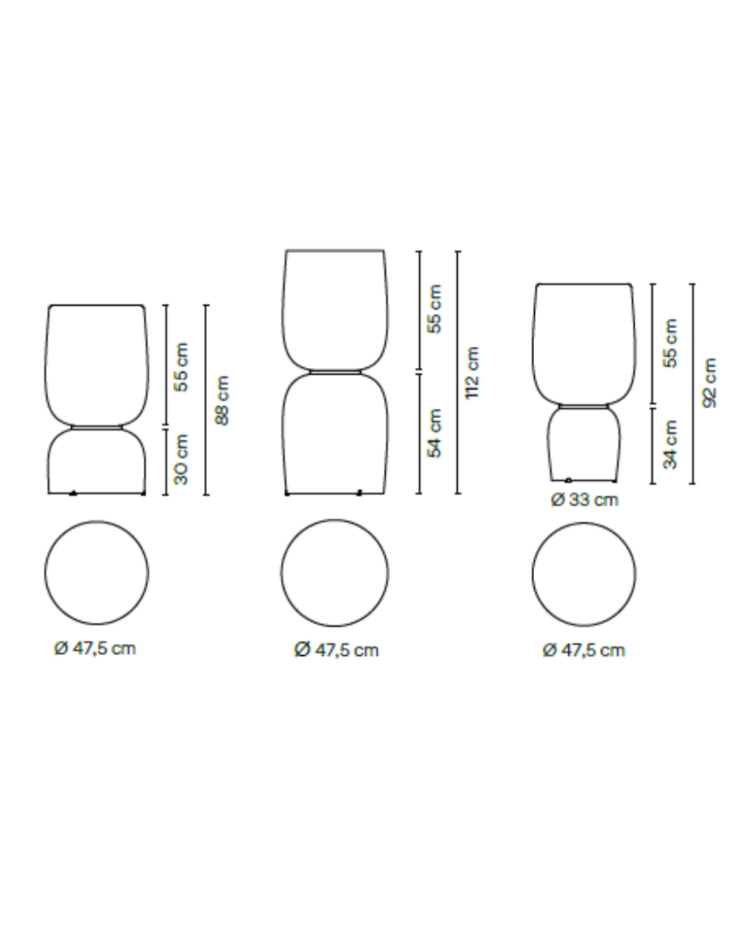 Grande: 47,5 x 112 cm (diámetro x alto).