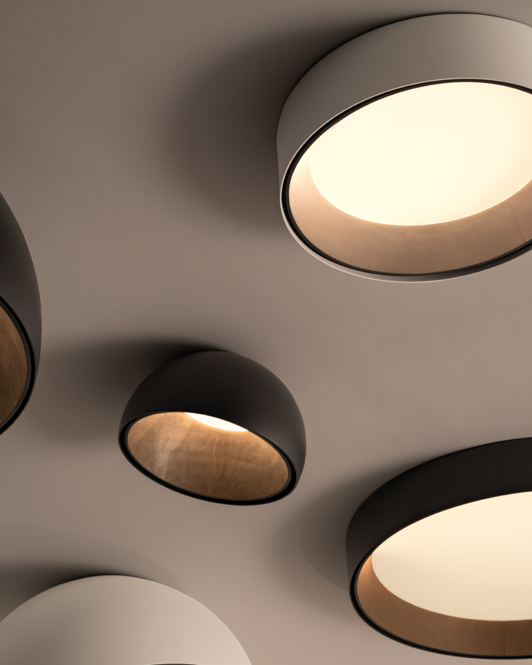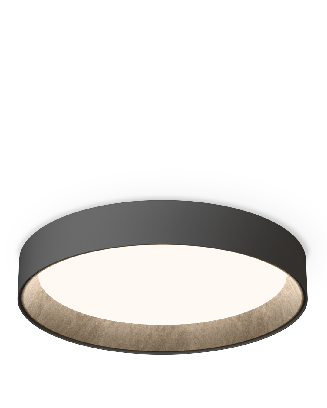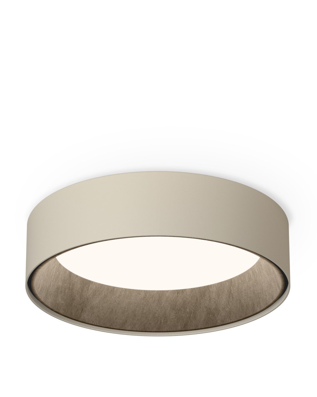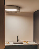 El plafón DUO piedra confiere al ambiente una elegancia atemporal y natural, gracias a su revestimiento interior de pizarra.