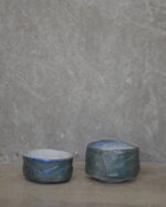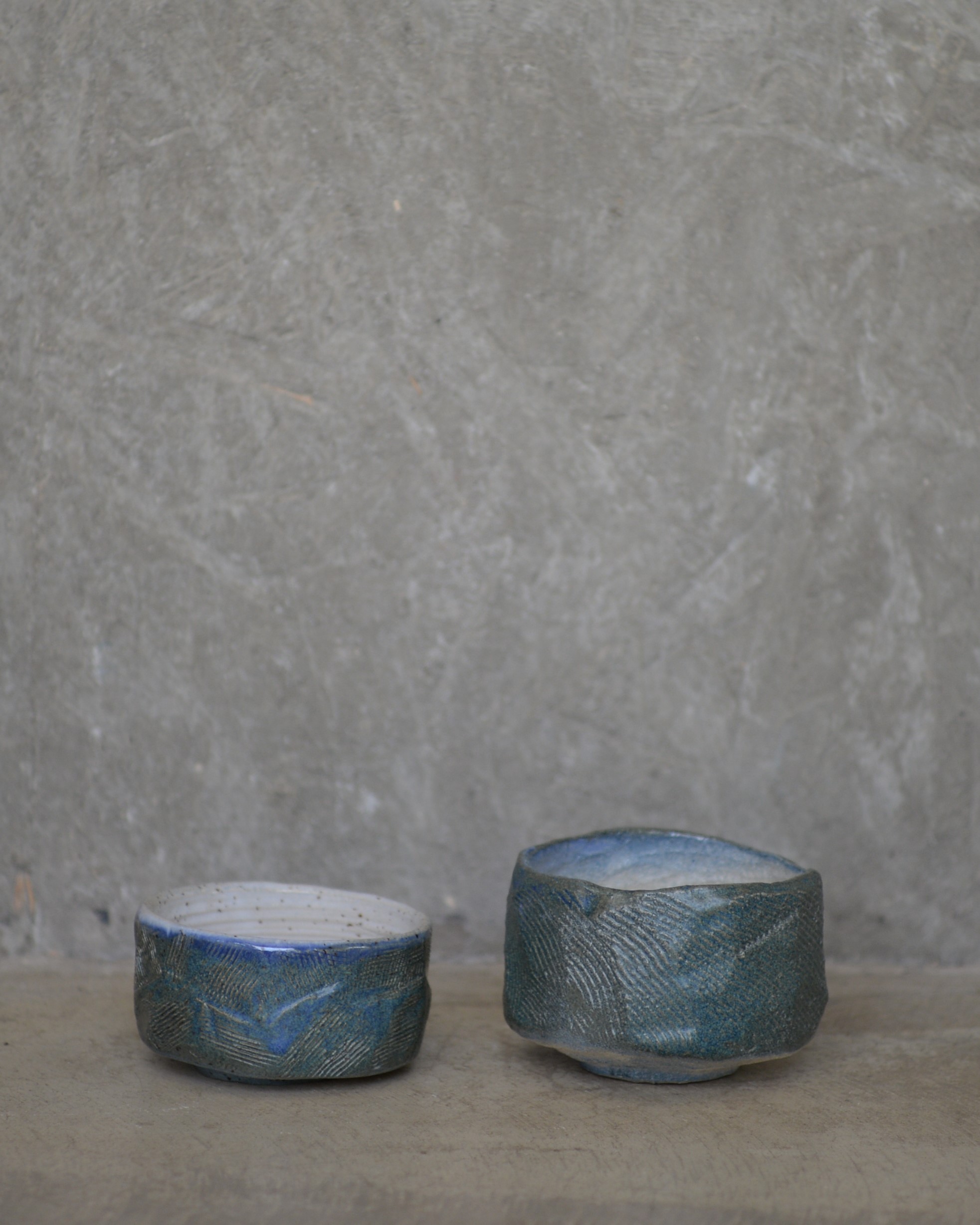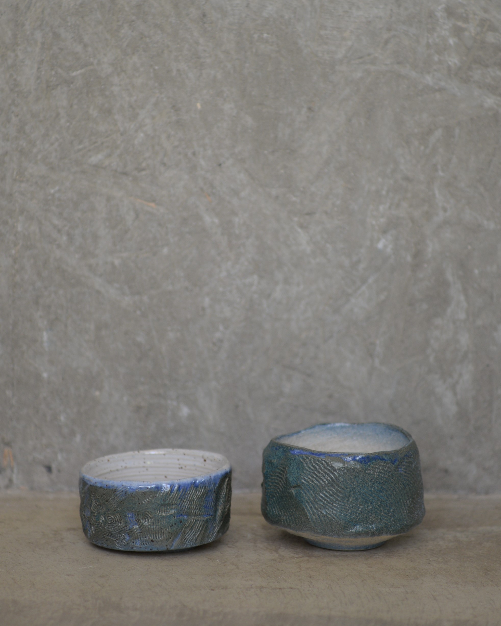 Pareja de chawanes (cuencos) de gres de textura rugosa y semi-mate.