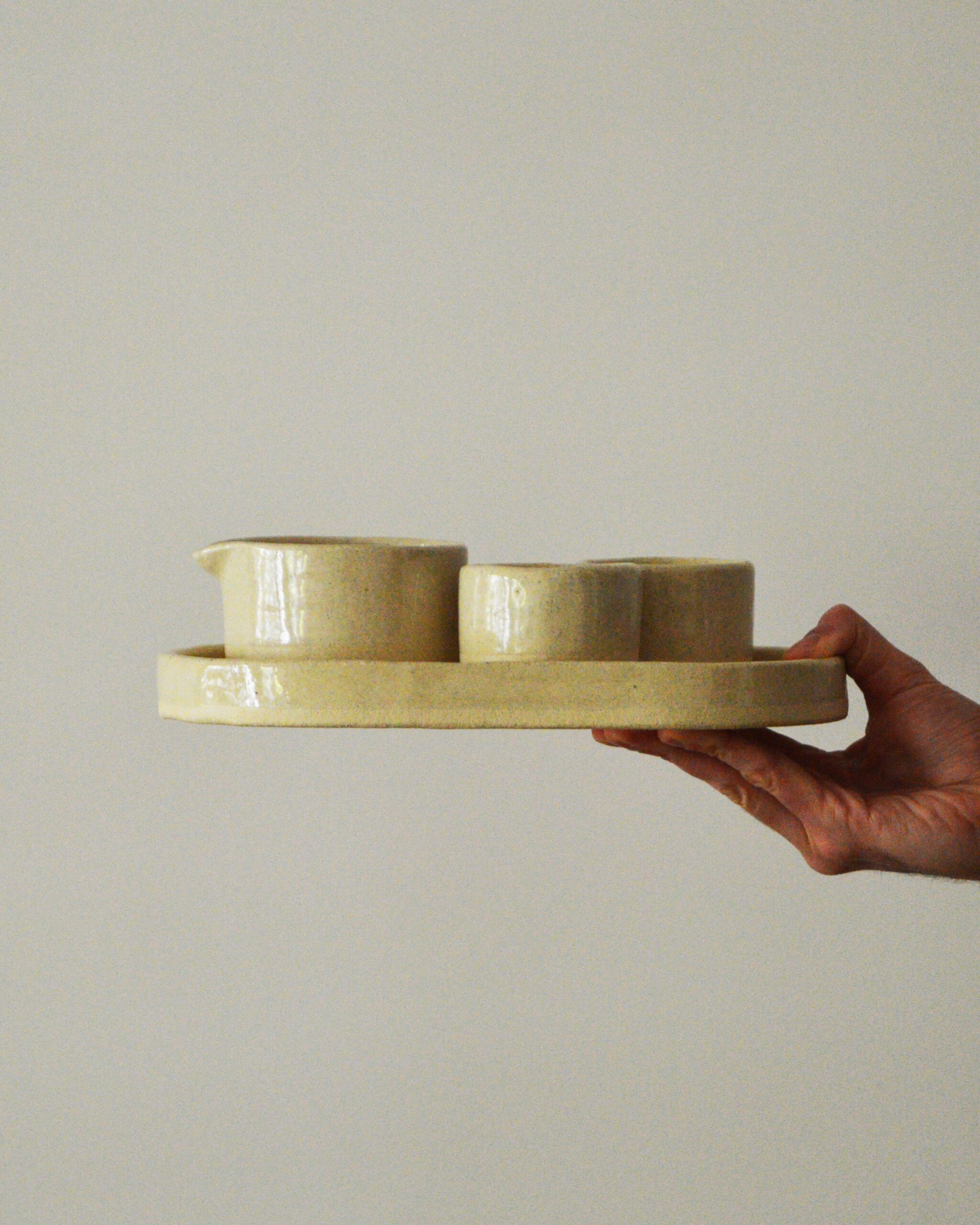 Juego de café de barro blanco.