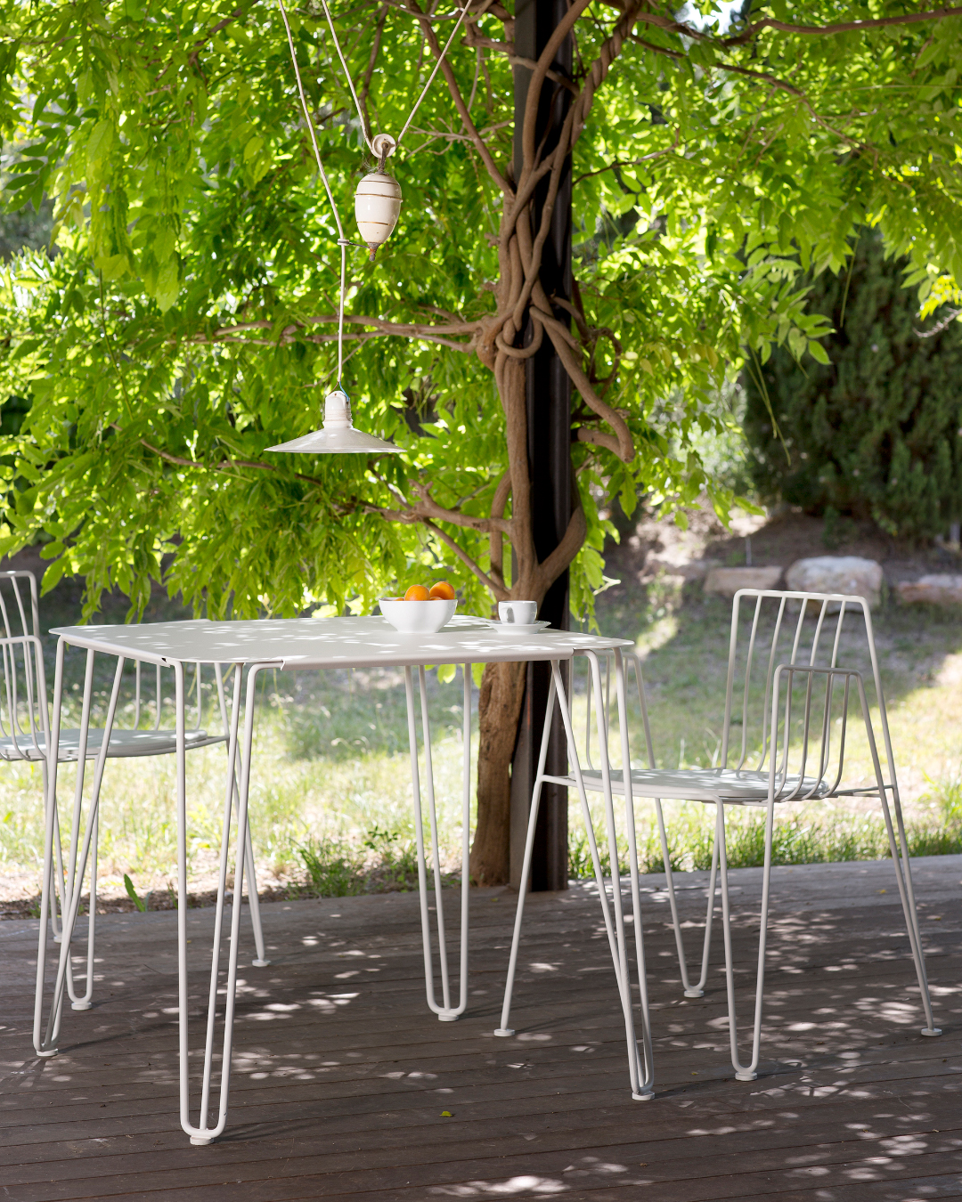 Estructura. Acero macizo de 12 mm de diámetro, pulida a mano y pintada en epoxi de color negro.