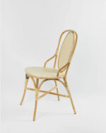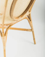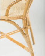 Silla fabricada artesanalmente con caña de ratán natural, junco, tireta de junco y tejido de ratán tipo espiga de 4 mm de tira.